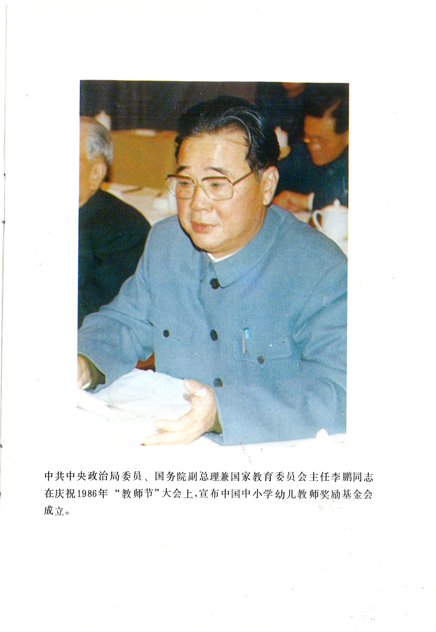 1986年9月10日,李鹏同志宣布中国中小学幼儿教师奖励基金会成立